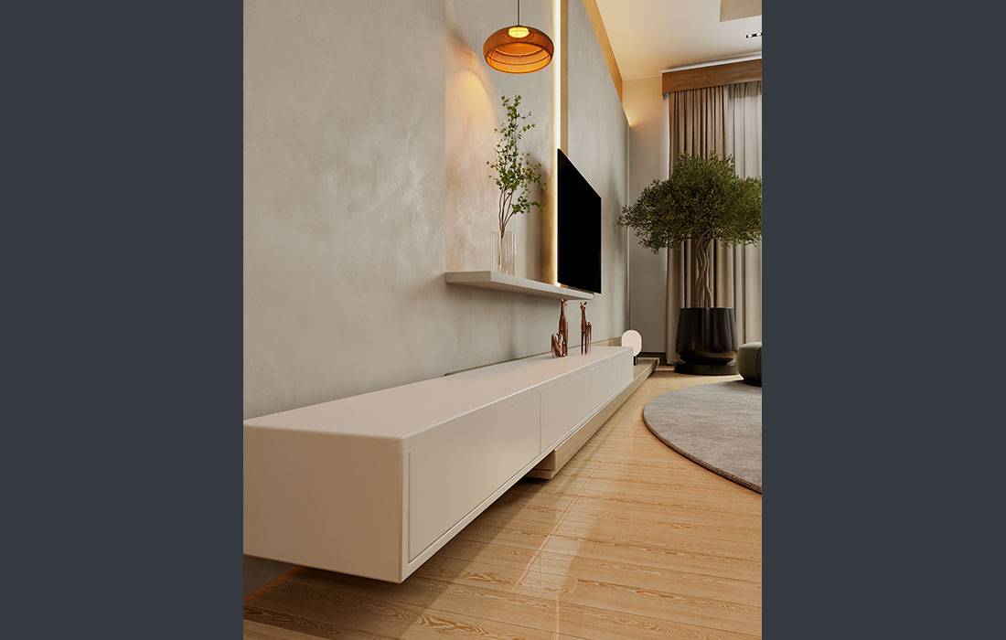 Before the design, this house was like a stage: Beautiful and orderly — but lifeless. Hooman and his wife weren’t truly living in the space; they were merely existing within its stillness. Our design approach wasn’t about decoration. It was about shifting energy — from silence to flow, from presence to connection. At the heart of this transformation is the TV wall, finished in warm grey microcement. It now serves as an energetic anchor — a surface that embraces natural light and dances with shadow. What was once static is now subtly alive.